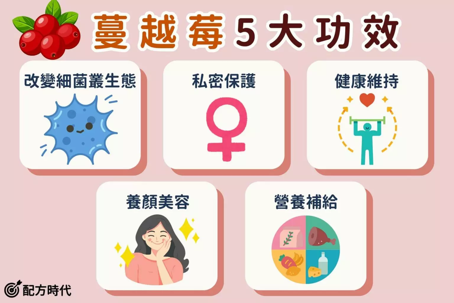 一般聽到蔓越莓直覺就是對女性的私密健康有幫助,但其實蔓越莓還有以下5大功效 :