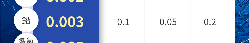 • 小型純淨魚種,各項汙染指標全數通過