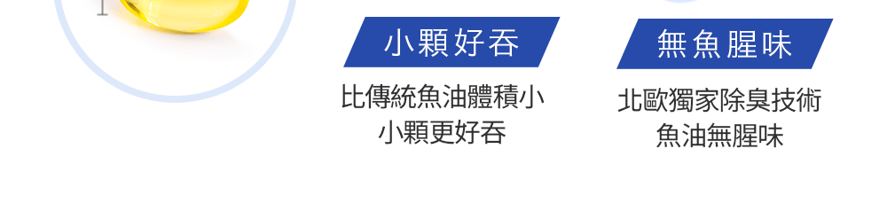 • 比傳統魚油膠囊縮小50%,小顆好吞無腥味
